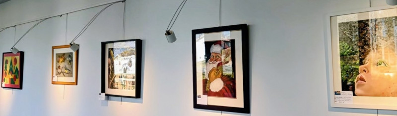 A notre Exposition de l'Atelier de Pastel en Dauphiné, à votre arrivée à la Maison des Arts de la Ville de Montbonnot-Saint-Martin, les premières œuvres exposées sont celles de quelques uns de nos adhérents qui ont participé à notre défi de Noël.