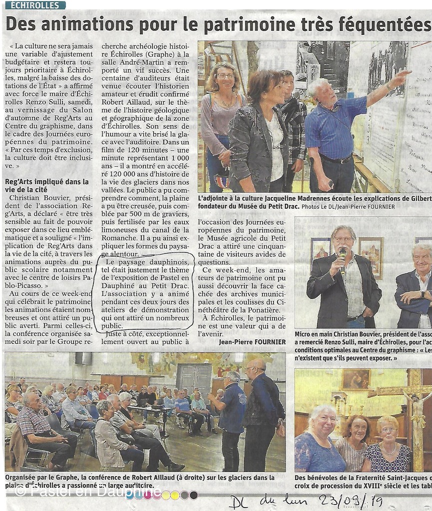 Les cimaises de notre atelier de l'Espace du Petit Drac proposaient également une vingtaine de pastels sur le thème du patrimoine du Dauphiné.