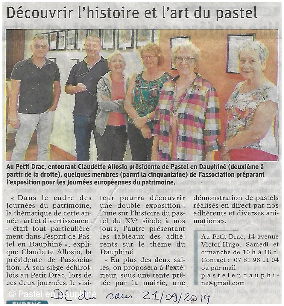Pastel en Dauphiné organise des stages de pastel destinés aux débutants comme aux pastellistes confirmés. Cet automne, l'association a proposé 3 stages qui se sont déroulés au sein de l'atelier du Petit Drac à Echirolles.