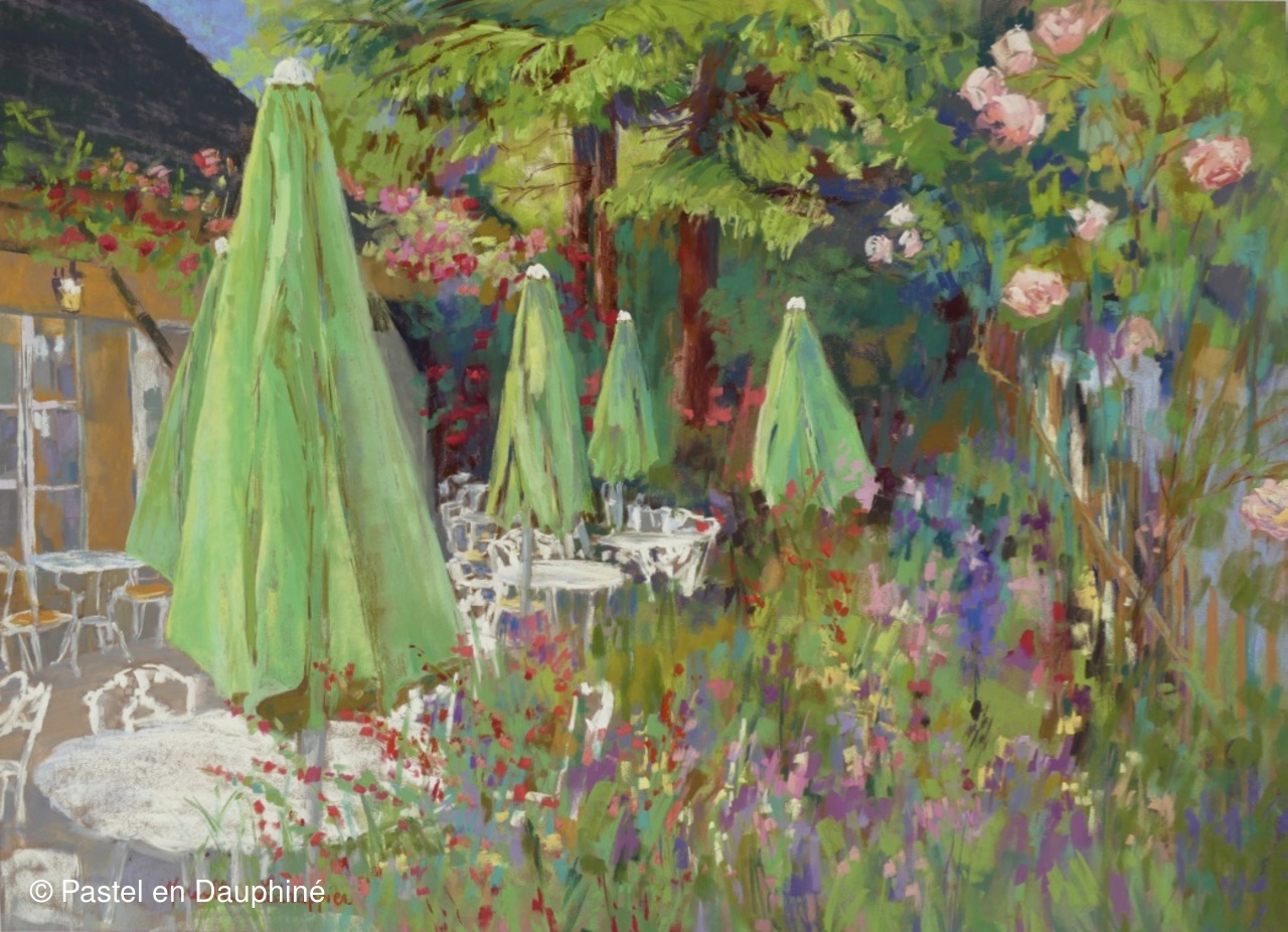LEDRAPPIER Mireille - Terrasse fleurie à Giverny - Pastel 84x64cm