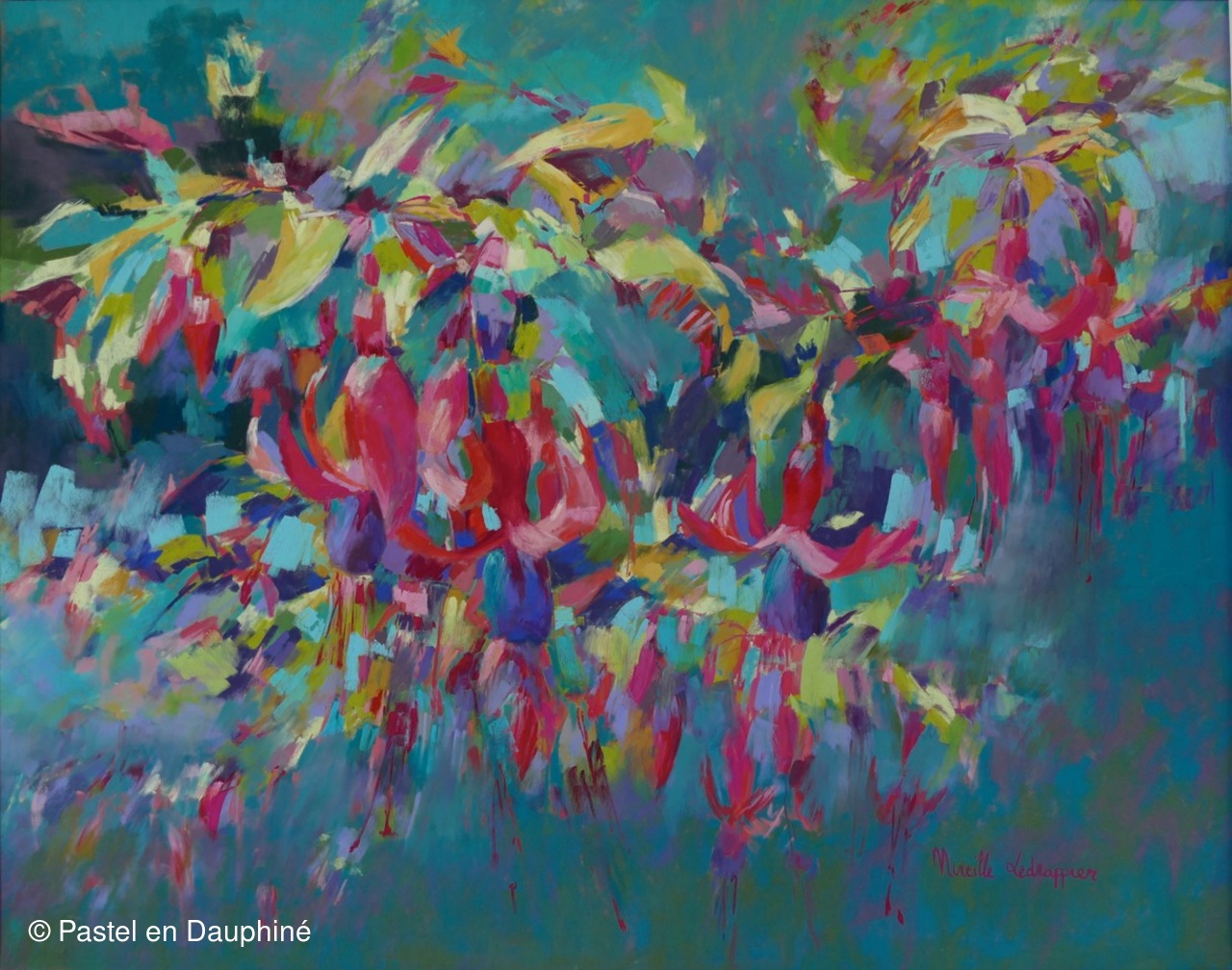 LEDRAPPIER Mireille - Guirlande de fuschias - Pastel 84x64cm