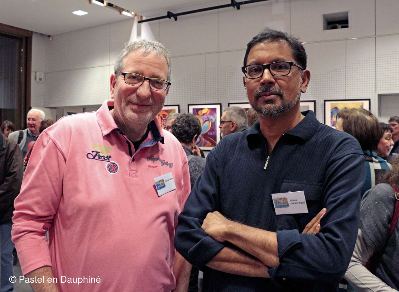Pastellistes renommés, Patrick Henry (à gauche) et Siddick Nuckcheddy ( àdroite) nous ont fait l'honneur de participer à notre biennale.