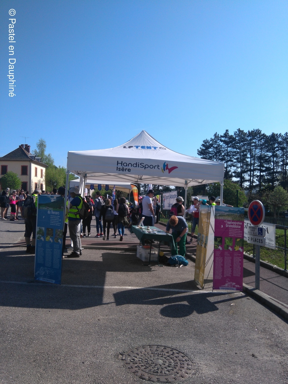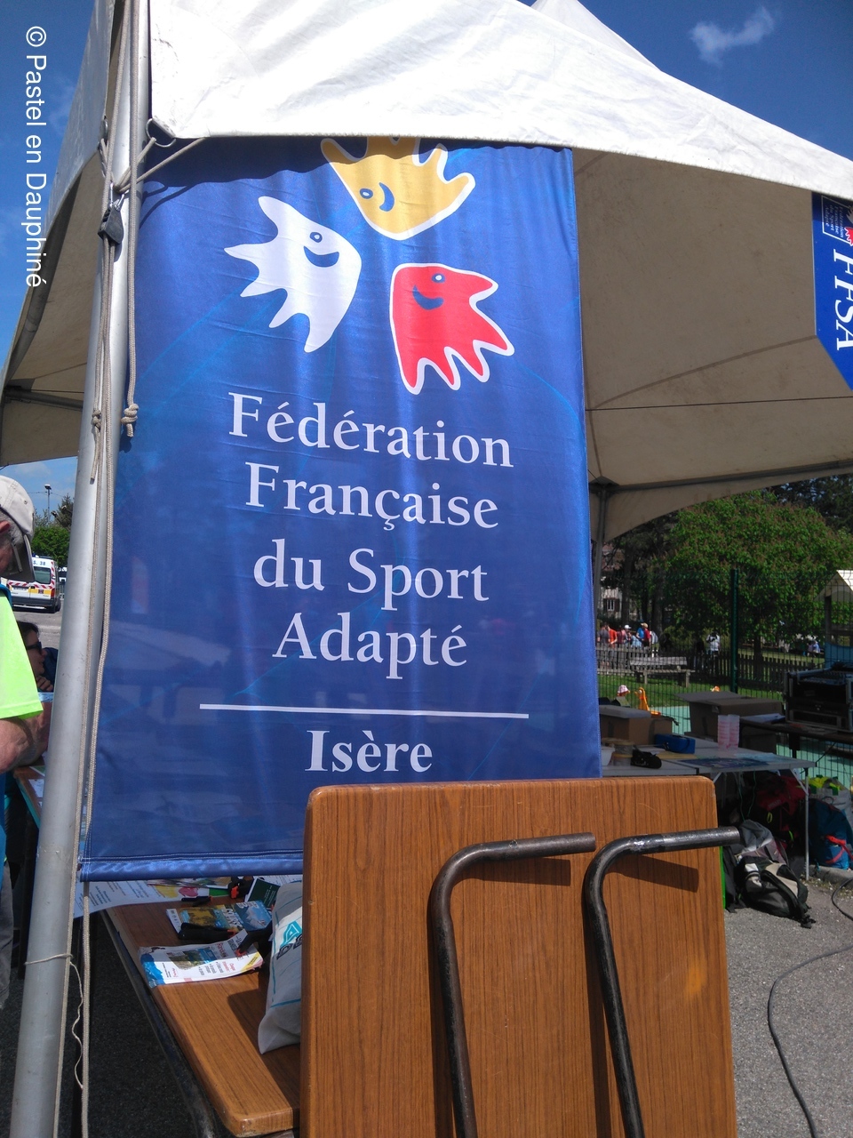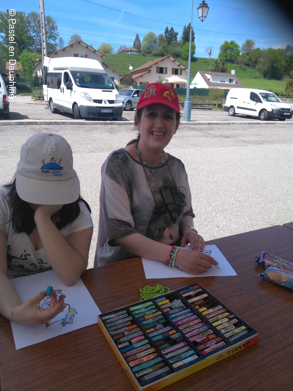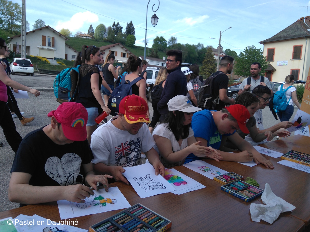 Animation Découverte du pastel auprès des personnes handicapées dans le cadre de la Rando pour Tous organisée par la Fédéreation Française de Sport Adapatée au Lac de Paladru, Isère, le 25 avril 2018. Photos de Michèle Bronner