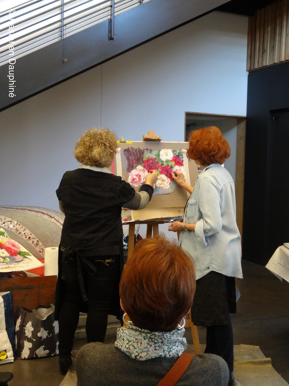 Démonstration à 4 mains de Mireille Ledrappier et Marthe Salavin 22 février 2019 - 4e Biennale de Pastel en Dauphiné