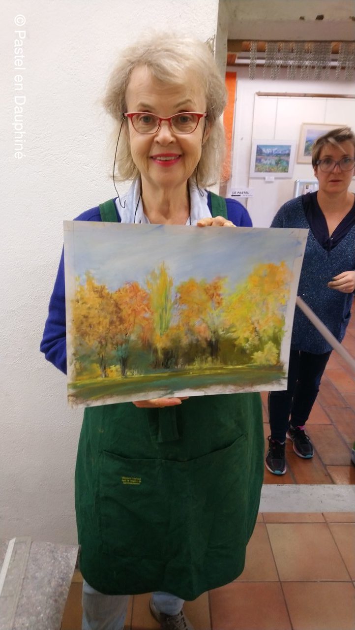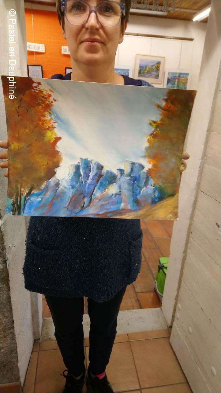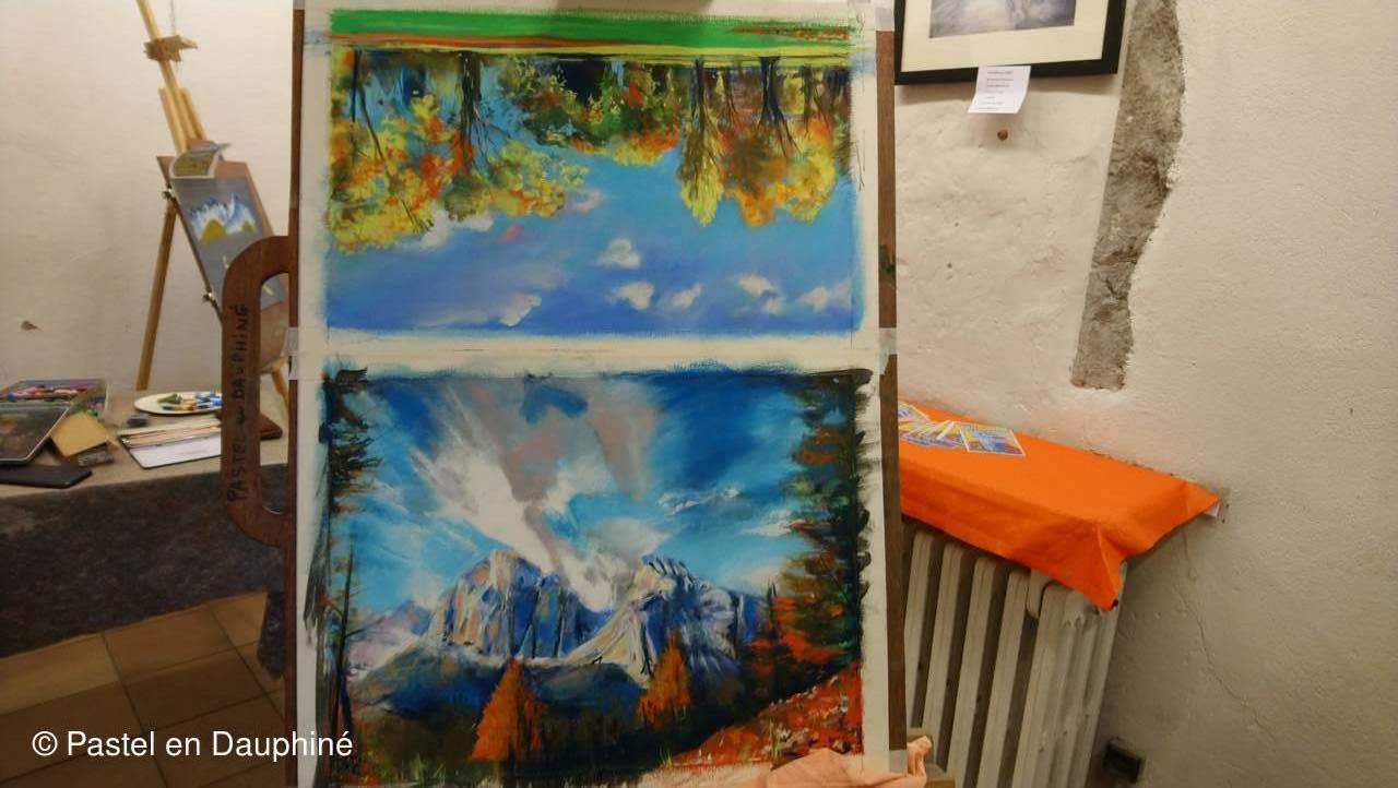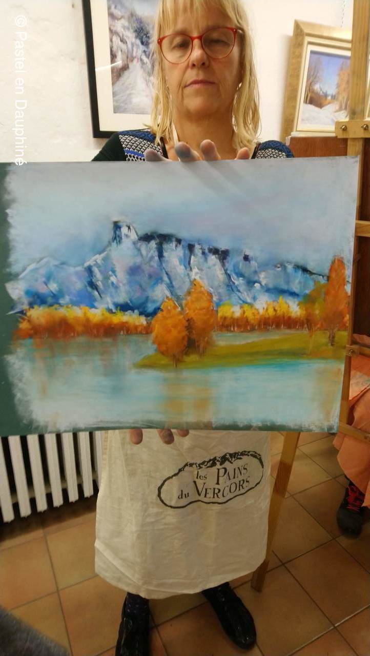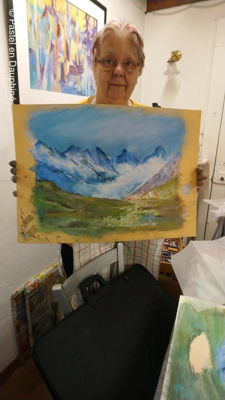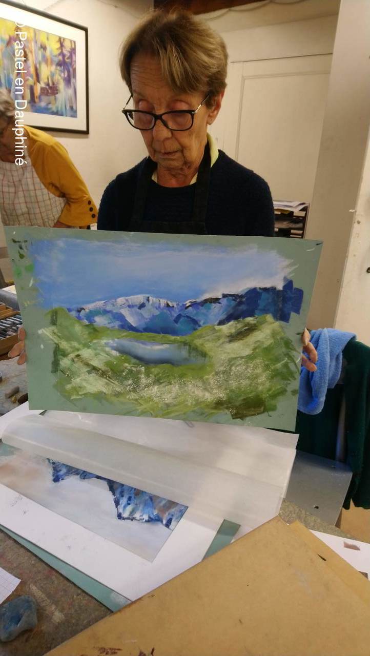 Le 26 octobre 2019, Michèle Bronner a animé un stage de pastel sur le thème du "Paysage de printemps sur fond de montagnes enneigées".