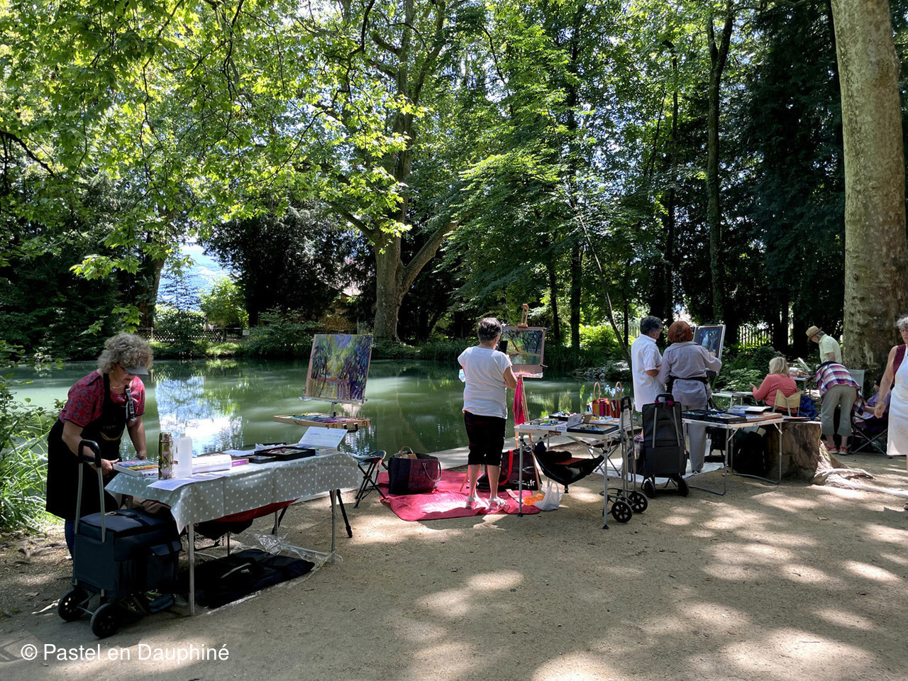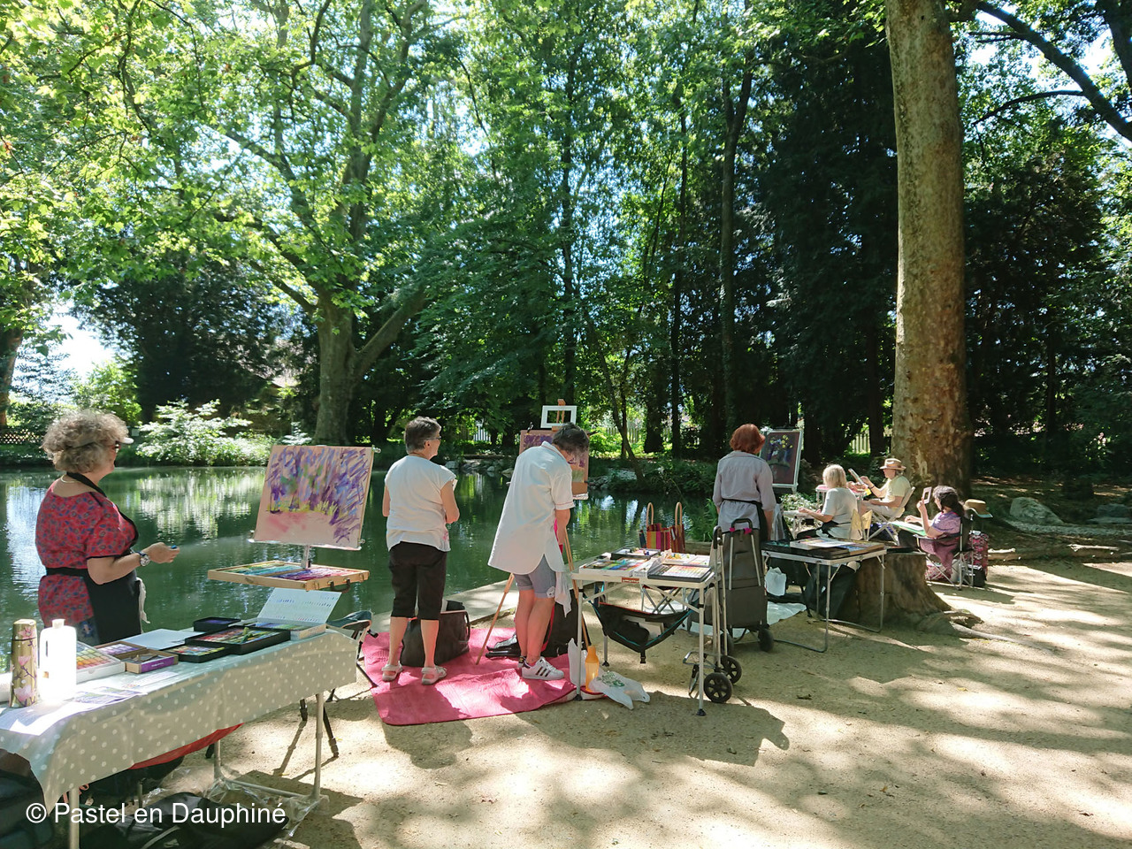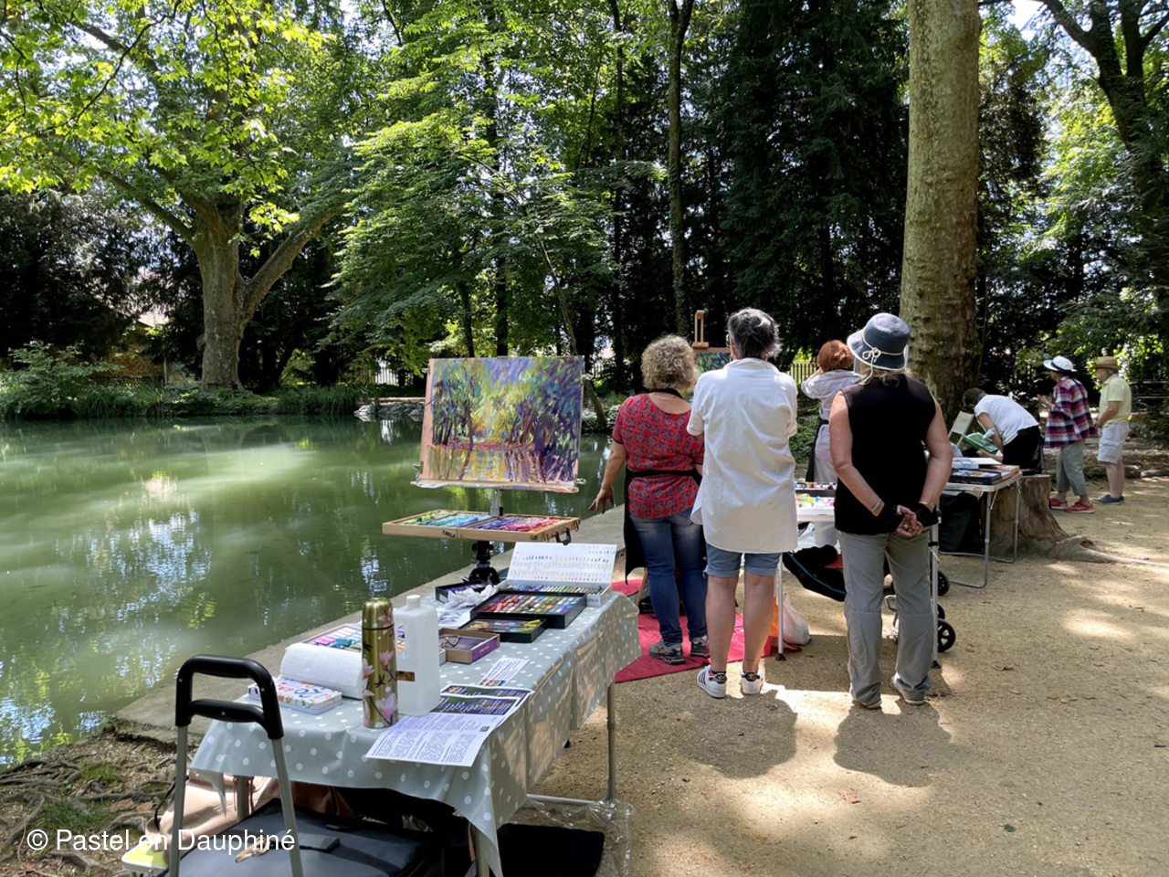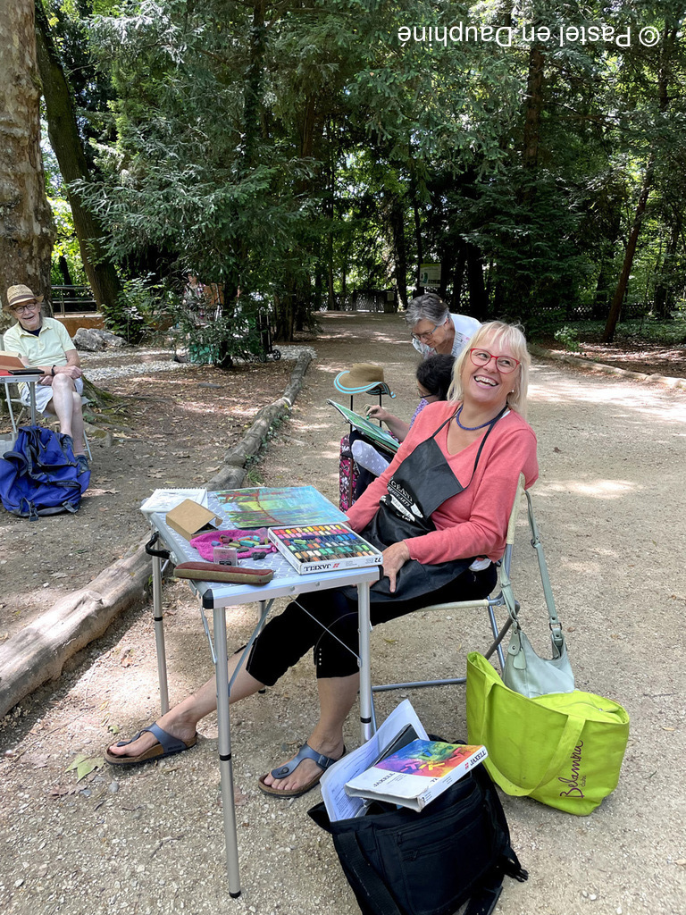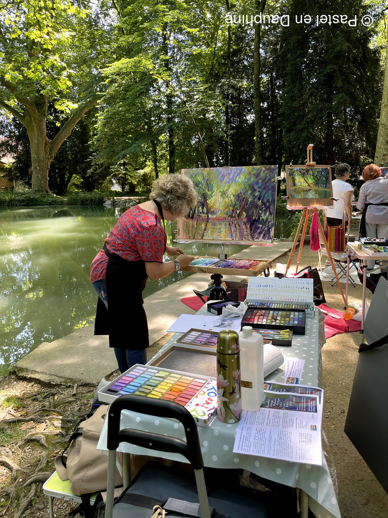 Cette belle journée de Juin a permis à une douzaine d'adhérents de Pastel en Dauphiné de se retrouver pour peindre ensemble au pastel dans un magnifique cadre verdoyant et ombragé, le Parc des Etangs de Maupertuis à Meylan.