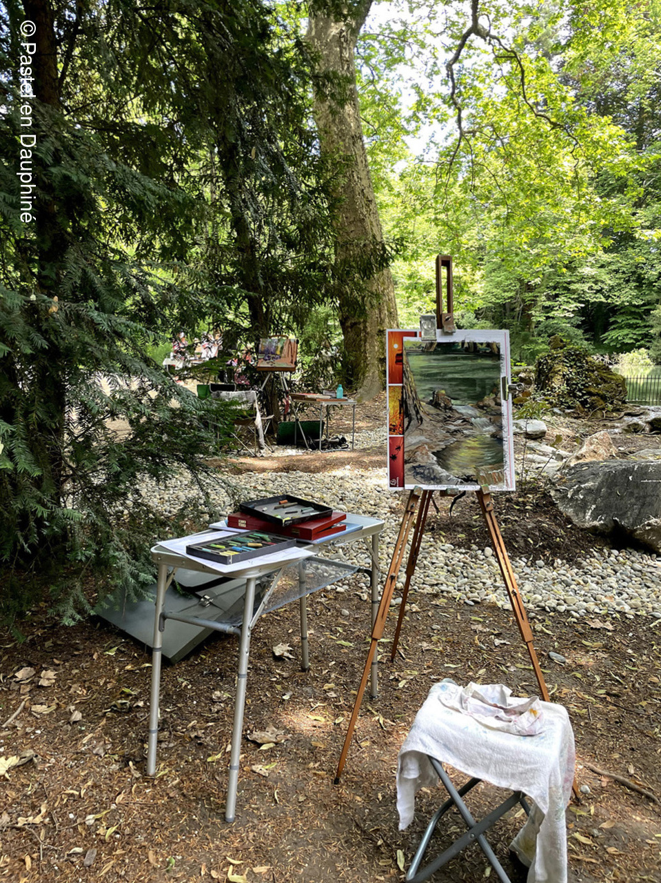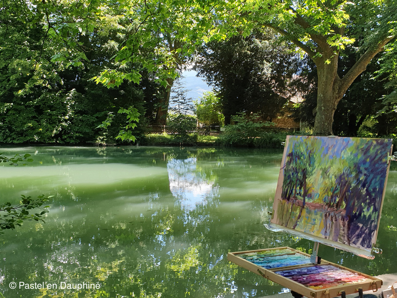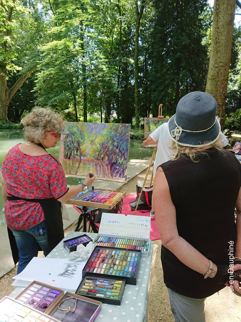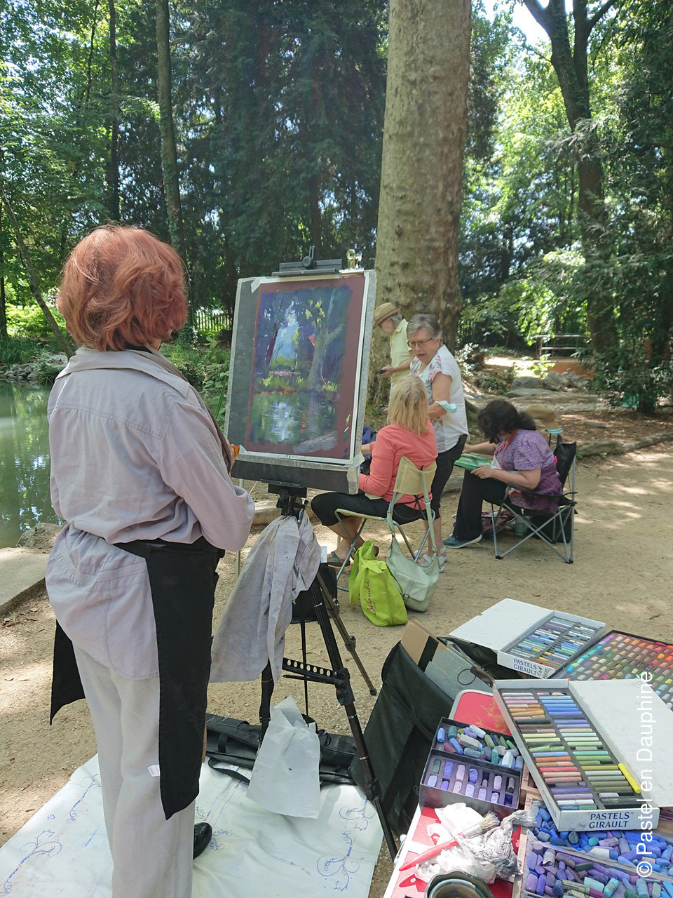 Cette belle journée de Juin a permis à une douzaine d'adhérents de Pastel en Dauphiné de se retrouver pour peindre ensemble au pastel dans un magnifique cadre verdoyant et ombragé, le Parc des Etangs de Maupertuis à Meylan.