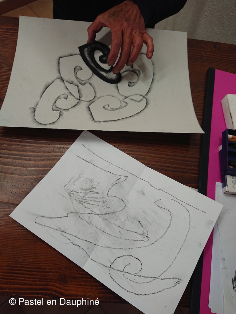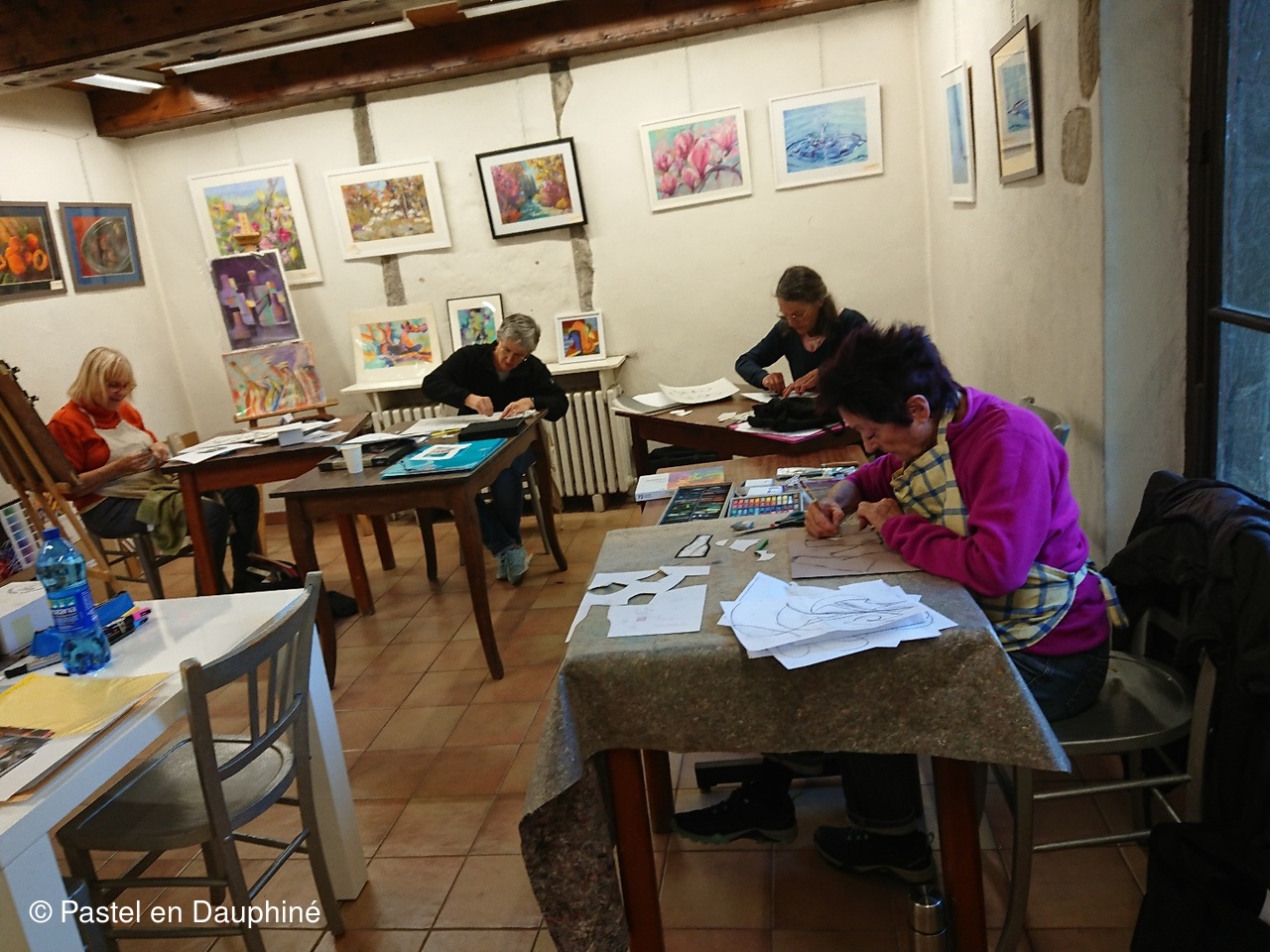 Le 23 octobre 2021, au Petit Drac à Echirolles, Claudette Alllosio animait un stage de créativité et lâcher prise au pastel.