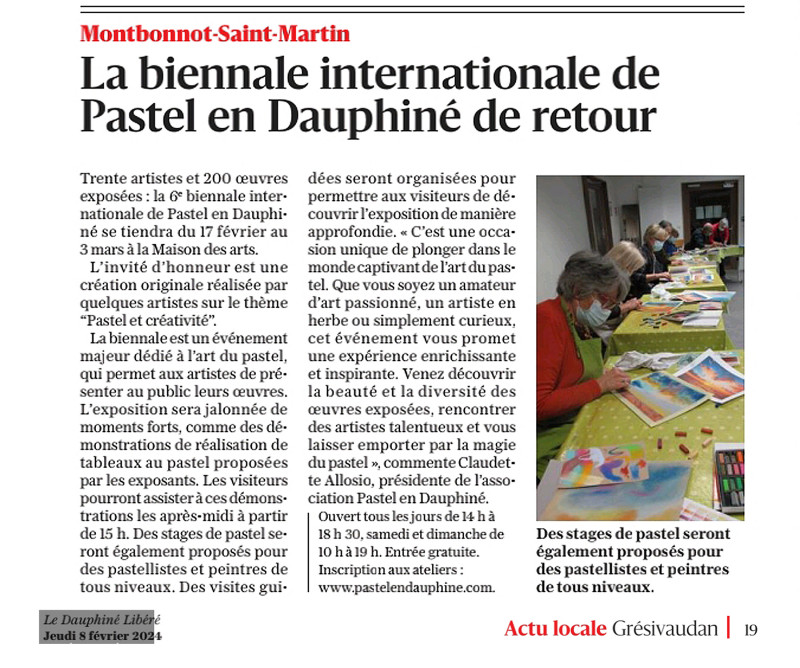 Article paru dans le Dauphiné Libéré du 08/02/2024, édition locale du Grésivaudan